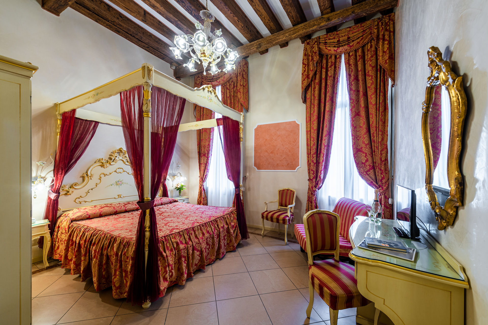 Amplia habitación muy cómoda con cama de matrimonio o 2 camas individuales y mobiliario de estilo veneciano del siglo XVIII. La habitación dispone de baño privado con ducha, aire acondicionado, televisión vía satélite de pantalla plana, juegos de té y café, caja fuerte, Wifi de banda ancha y secador.