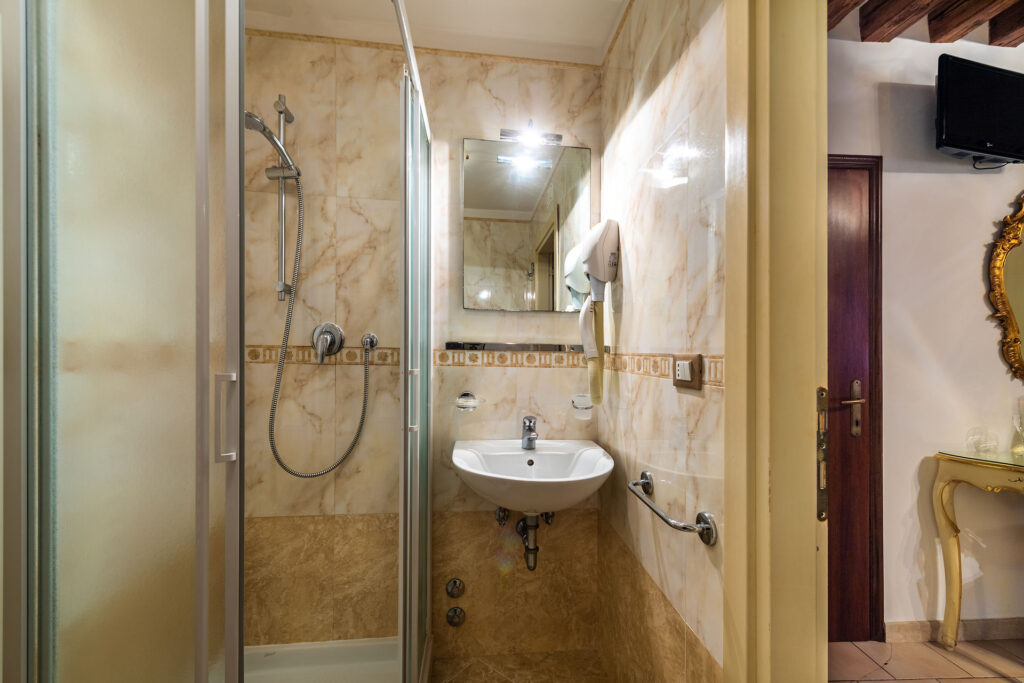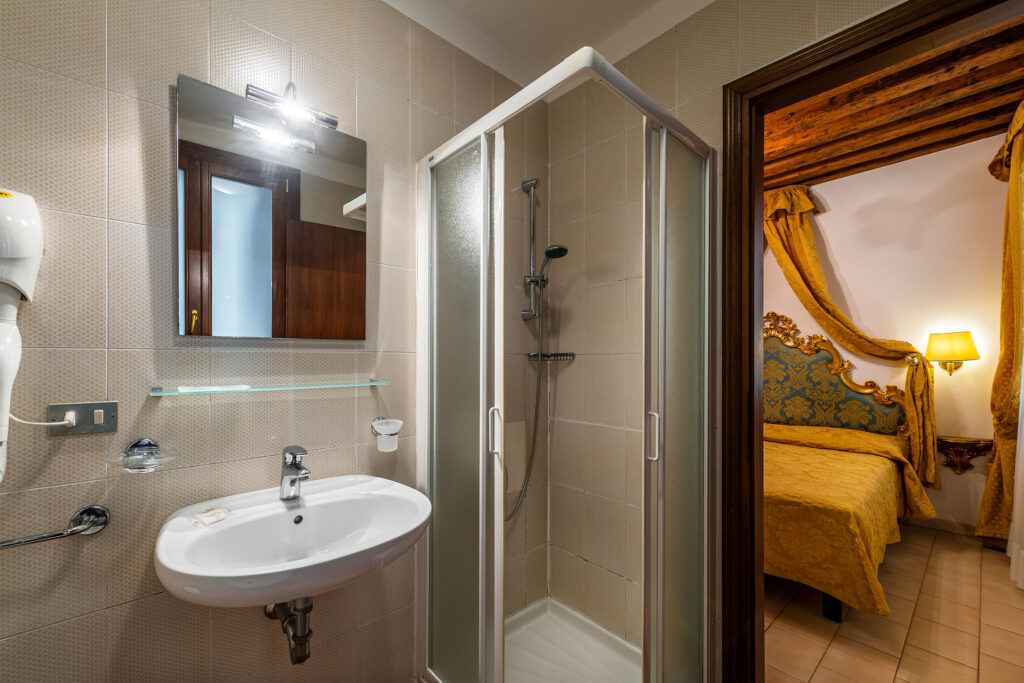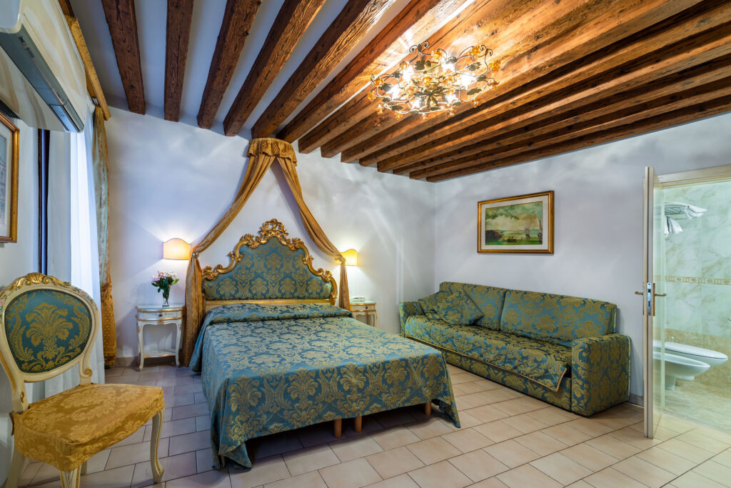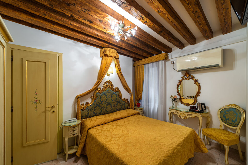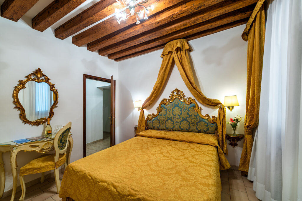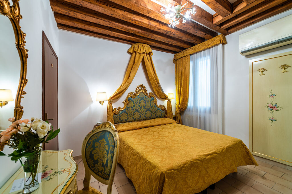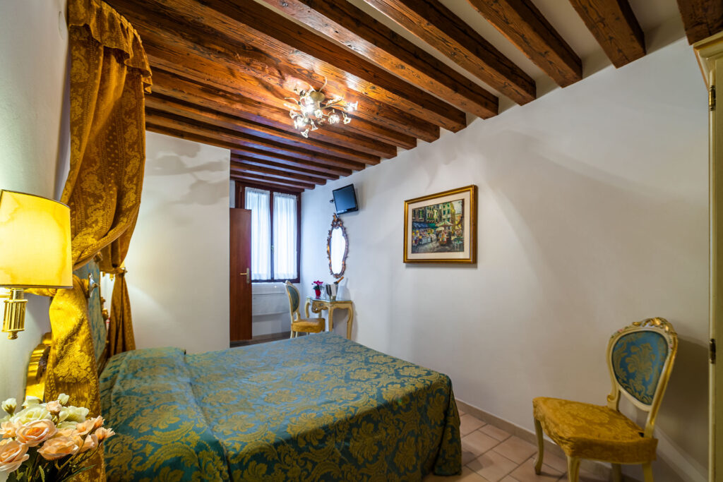 Habitación cómoda con cama francesa de matrimonio y mobiliario de estilo veneciano del siglo XVIII. La habitación dispone de baño privado con ducha, aire acondicionado, televisión vía satélite de pantalla plana, juegos de té y café, caja fuerte, Wifi de banda ancha y secador.