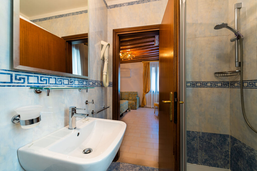 Habitación muy cómoda con cama de matrimonio o 2 camas individuales y mobiliario de estilo veneciano del siglo XVIII. La habitación dispone de baño privado con ducha, aire acondicionado, televisión vía satélite de pantalla plana, juegos de té y café, caja fuerte, Wifi de banda ancha y secador.